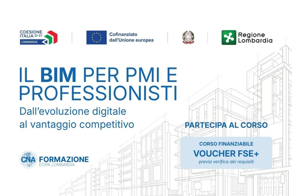 Il corso “Il BIM per PMI e professionisti” è finanziabile tramite Voucher FSE+, previa verifica dei requisiti, nell’ambito delle politiche di formazione continua di Regione Lombardia.